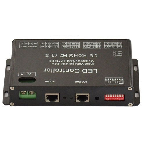 Ce contrôleur permet de piloter en DMX jusqu'à 4 rubans led RGB de 10 ou 20 mètres chacun, selon la densité de leds par mètre.